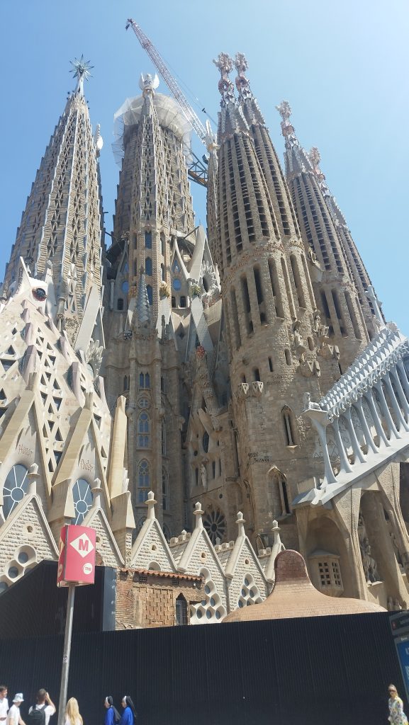 Wykupiliśmy wycieczkę przez Get transfer Barcelona z polskim przewodnikiem. Busem ruszyliśmy z Santa Susanna, aż do mylnie nazywanej stolicą Hiszpanii, Barcelony. Podczas podróży nasz przewodnik przybliżył nam historię Katalonii i życie codzienne w Barcelonie, gdzie sam mieszka. Pierwszym punktem był Stadion Camp Nou i muzeum klubu FC Barcelona. Dla fanów piłki nożnej to miejsce jak ze snów, jednak na mnie nie robiło wrażenia. Po obkupieniu się przez młodego w sklepie klubowym ( koszulka, spodenki, skarpetki, breloczek i szalik) pojechaliśmy do Parku Guell, który jak powiedział nam przewodnik z zamysłu Gaudiego miał być luksusowym osiedlem, ale nigdy nie zostało ukończone, więc postanowiono stworzyć tam darmowy park, gdzie ludzie będą spędzać czas, tak też było, jednak z przypływem turystów, postanowiono, ustalić opłaty za wejście. Nawet mieszkańcy Barcelony muszą opłacać wejście. Różnorodna roślinność, budynki ozdobione mozaiką i wielka jaszczurka przejściu. Z wyższych partii ogrodu można zobaczyć piękną panoramę Barcelony. Kolejnym punktem, na który pojechaliśmy busem była wielka Sagrada Familia, kolejne dzieło Gaudiego, którego budowa trwa już ponad 130 lat. Modernistyczna świątynia będzie największą świątynią w Europie. Nie weszliśmy do środka, bo po pierwsze była duża kolejka, a po drugie, nie interesowało nas wnętrze. Cała budowla jest trochę niespójna i przepełniona symbolami z biblii. Myślałam, że zrobi ona na mnie wrażenie, jednak nie było to jakieś wielkie wow. Kilka zdjęć i jechaliśmy dalej. Przewodnik zawiózł nas na najbardziej uczęszczaną ulice Barcelony –La Rambla, przy której znajdował się bazarek ze świeżymi owocami, mięsem, przyprawami i serami. Na końcu ulicy La Rambla, tuż przy porcie znajdował się Pomnik Kolumba, który ręką wskazywał na port. To wysoka kolumna licząca 40 m z tarasem widokowym i 7,2m posagiem Kolumba na czubku. Tam na La Rambla mieliśmy dwie godziny czasu wolnego, więc wykorzystaliśmy go na spacer gotyckimi, wąskimi uliczkami, zobaczenie Placu Królewskiego. Następnie przewodnik odebrał nas z umówionego miejsca i ruszyliśmy dalej na objazdówke po mieście, które według legendy założył Herkules. Zobaczyliśmy Wzgórze Montjuic, czyli “zielone płuca” Barcelony, gdzie zwiedziliśmy stadion olimpijski i basen, z którego rozpościera się wspaniały widok na panoramę miasta. Dalej kolejny punkt widokowy przy „czerwonej kolejce” Teleferico del Puerto, z którego widzieliśmy cały port. Następnie zatrzymaliśmy się przy Casa Batllo, czyli budynku inspirowanym marzeniami sennymi, którego autorem był Antoni Gaudi i Casa Mila, dom wpisany w 1984 r na Listę Światowego Dziedzictwa Ludzkości. Na końcu zrobiliśmy zdjęcia przy Łuku Triumfalny, zbudowany z czerwonej cegły, przypomina trochę Luk z Paryża, ale jest mniejszy i nie robi takiego wrażenia.