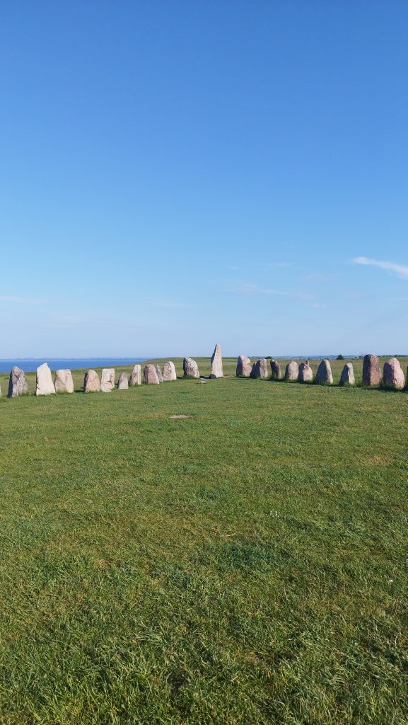 Punktem pierwszym był Kaseberg i Ales stenar. Ta mała klimatyczna wioseczka nad brzegiem morza, urzeka nie tylko bajeczną architekturą, ale również spokojem i widokami. Ales stenar, znajdujące się na wzgórzu, to 59 kamieni, ułożonych w kształt łodzi. Znajduje się na terenie parku naturalnego i liczy ok 1400 lat. Gdy przyjechaliśmy to nie było ludzi, zrobiliśmy więc piknik.