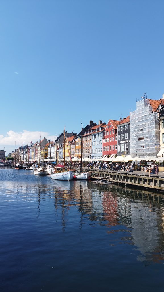 Następnie spacerowaliśmy szukając cienia, choć to było trudne, wzdłuż Ved stranden, aż do Nyhavn, nowego portu z kolorowymi domkami.
