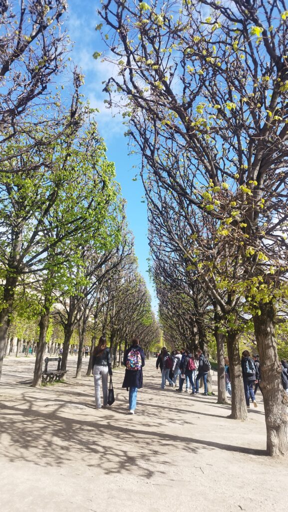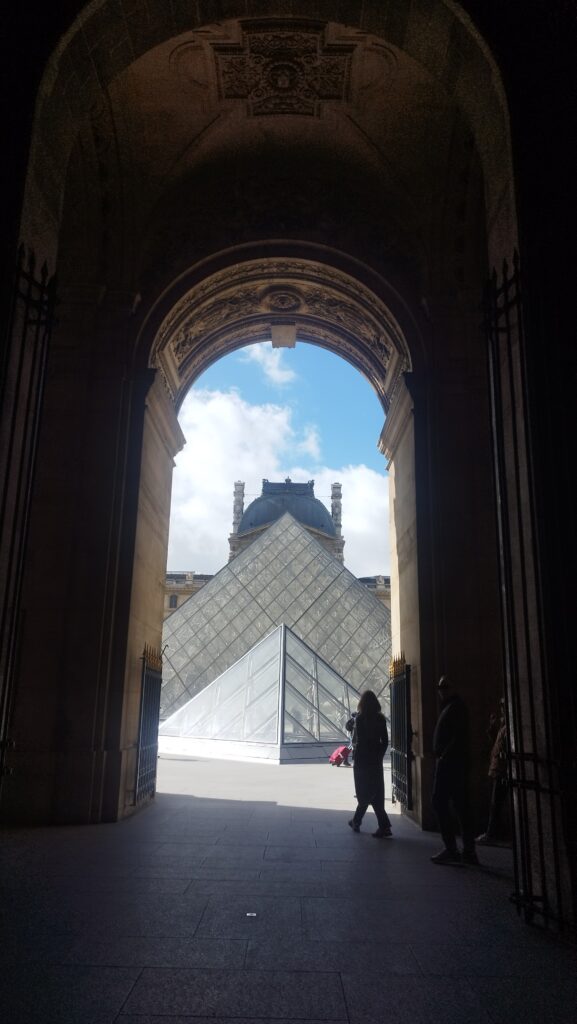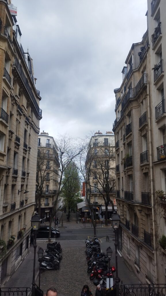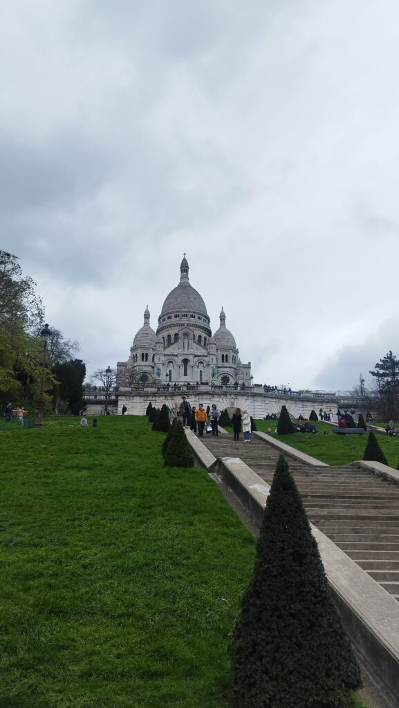Mimo zmęczenia ponownie wyznaczyliśmy sobie ambitna trasę. Metrem podjechaliśmy pod sam Luwr i przeszliśmy na druga stronę ulicy, pod arkadami do Royal Palais. Budynku urzędowego w którym kiedyś znajdowały się burdele i inne ciekawe, i półlegalne przybytki. Na placu przy wejściu, pomiędzy arkadami znajdują się czarno białe pale, które świecą w nocy od fluorescencyjnej zielonej farby. Dalej rozciągały się ogrody, w których chyba kręcono jakiś film, bo rozstawiono kamery. Kolejnym punktem był Hotel Ritz, miejsce gdzie swoja ostatnia noc spędziła Księżna Diana. Jak również widzieliśmy jej pomnik Księżnej Diany tuż nad tunelem, w którym zginęła. Przy hotelu znajdowały się same najdroższe i najpiękniejsze sklepy, a przy ich wejściu stali ochroniarze. Potem wsiedliśmy do metra i pojechaliśmy na stację Pigalle. Malutkie rondo, gdzie można zjeść najlepsze kasztany. No chyba, że kupi się kasztany od pół legalnych sprzedawców pod wieżą, skarżących je na wózkach z biedronki. Z placu Pigalle wspinaliśmy się na Montmartre. Cykaliśmy fotki na Molin Rouge, niczym Merlin Monroe na kratach metra z powiewami powietrza. Słynna ulica burdeli, sex shopów czy innych podobnych ciągnęła się aż pod sama bazylike. Jednak my skręciliśmy tu i tam i dotarliśmy do popularnej bagieterii z bajki animowanej “Biedronka i Czarny kot”, niestety była zamknięta. Schodami, bo niby czym innym, doszliśmy na Plac Artystów. Pełno ludzi i malarzy, którzy rysowali portrety turystów. Młody i Ja również mamy takie portrety, modernistyczno- kubistyczne. Naprawdę ciekawe i piękne. Kilka minut wystarczyło aby dotrzeć do Bazyliki Sacre Creme. Wysoko położony obiekt, pozwala spojrzeć na piękną panoramę Paryża i zarazem dostępna bez biletów. Tylko nie chcieliśmy stać w drugiej kolejce. Zeszliśmy schodami, zamiast zjechać kolejka, trzeba spalać kalorie. Minęliśmy grupkę ludzi, którzy próbowali innym turystom wcisnąć bransoletki. Uważajcie na nich. Będą łapać was za ręce i zawiązywać bransoletki, aby je zdjąć trzeba je rozerwać, przez co chcąc je ściągnąć musicie zapłacić. Nie jest to wielki problem i nie mieliśmy takiej przygody, ale widziałam jak łapali innych turystów.