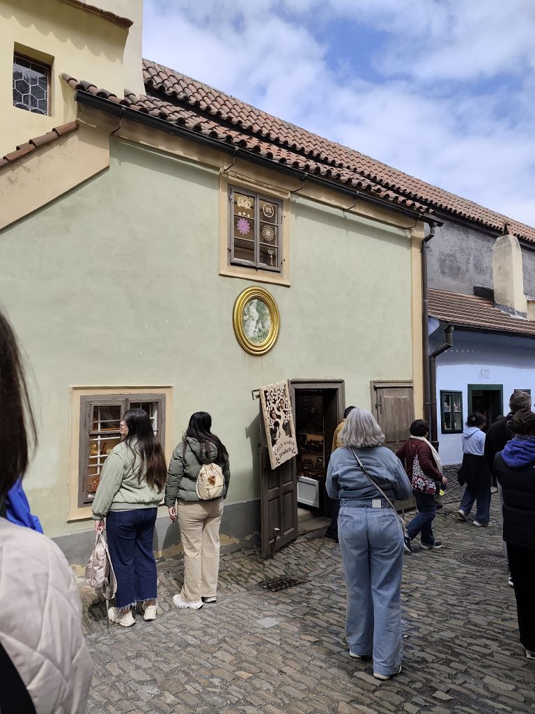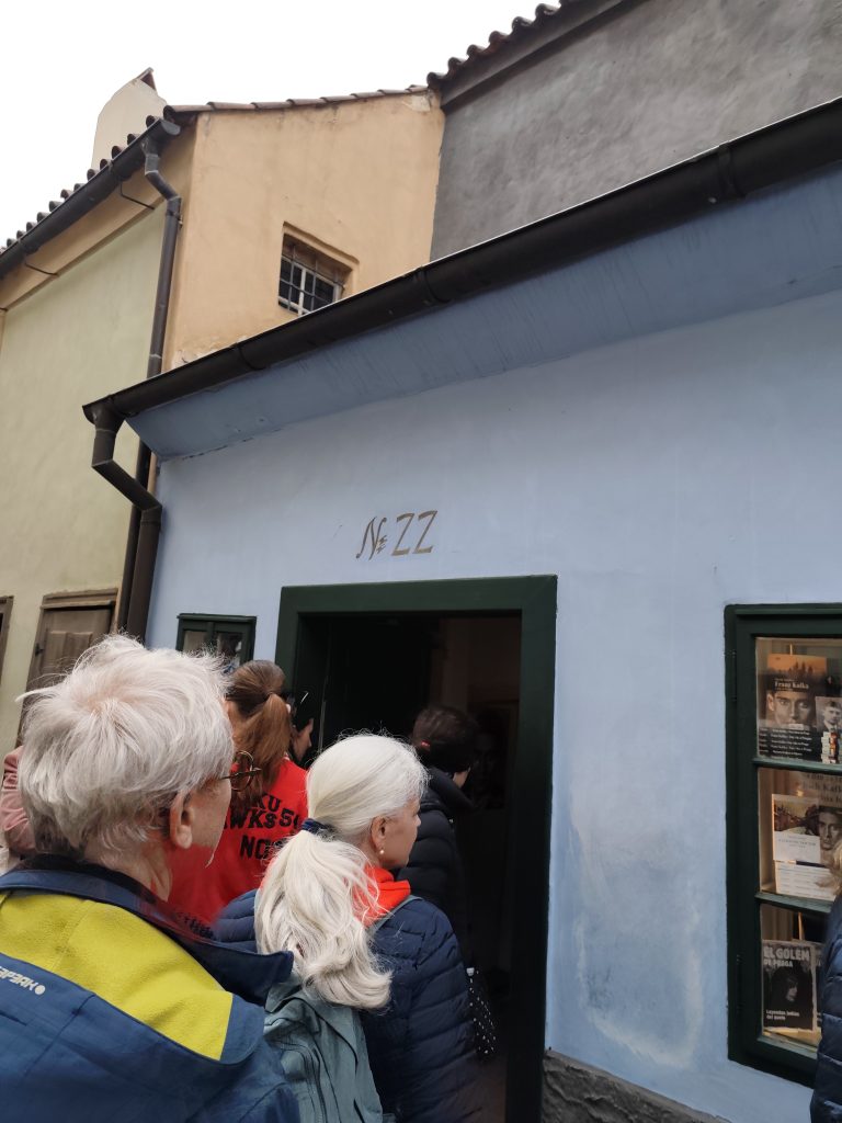 Kolejnym punktem, które można odwiedzić, związanym z Franzem Kafką jest złota uliczka i jego dom nr.22. Jednak szczerze, to nie można się wielce nastawiać na niesamowite małe domki czy złote zdobienia. Uliczka była złota ze względu na ilość różnorodnych zawodów i rzemiosła, od zielarza, naukoznawczyń czy innych. Było mnóstwo ludzi, więc nawet nie można było się przyjrzeć dobrze urokliwym kolorowym domkom, przylegającym do muru obronnego. Bilety są drogie, a atrakcja nie zachwyca tak jak się można tego spodziewać.