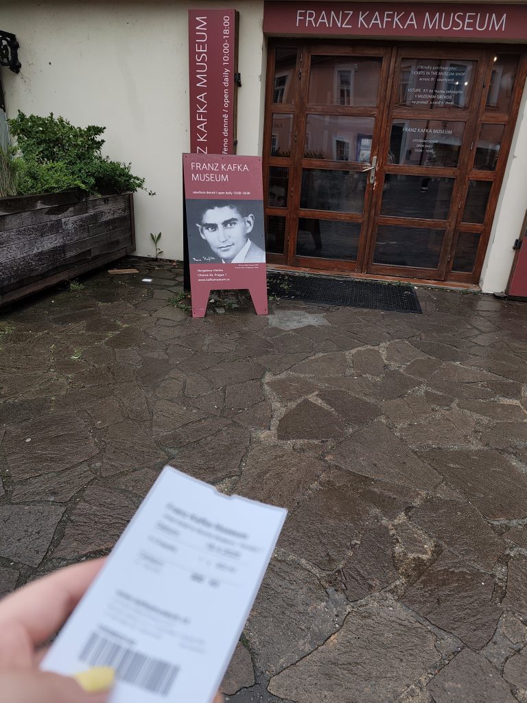 Informacja dla osób nie rozeznanych w temacie niesamowitego pisarzami Franz Kafka mieszkał i tworzył w Pradze. Idąc jego śladami warto odwiedzić muzeum znajdujące się na Malej Starej tuż przy brzegu rzeki. Bilety kupuje się w oddzielnym budynku, w którym znajduje się też sklepik. Aby dojść do wystawy trzeba przejść przez plac/ mały dziedziniec wokół którego znajdują się kawiarnie i restauracje, a w jego centrum nietuzinkowa rzeźba Davida Cernego “Oblewający politycy”. Ekspozycja w muzeum jest różnorodna i przetłumaczona na angielski i niemiecki. Znajdują się tam filmy, zdjęcia, listy Franza Kafki do ojca, jego rysunki i pierwsze wydania Procesu. Bardzo ciekawe miejsce dla fanów pisarza. Bilet kosztował 13 Euro.