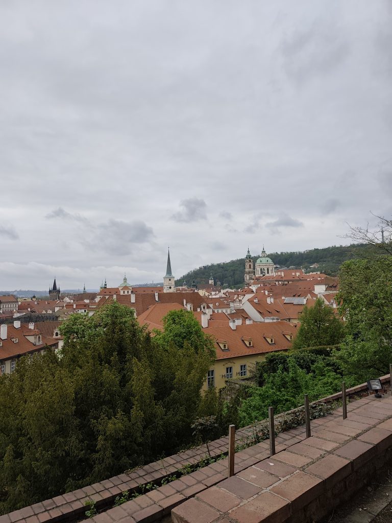 Hradczany to dzielnica Pragi położona dość wysoko, więc odwiedzających czeka długa wspinaczka. W drodze na zamek Praski wstąpiliśmy do ogrodów rozpostartych na zboczach i tarasach. Piękne widoki i równie niesamowite ekspozycje kwiatowe. Uciążliwe mogą być jedynie schody, ale piękno tego miejsca wszystko wynagradza.