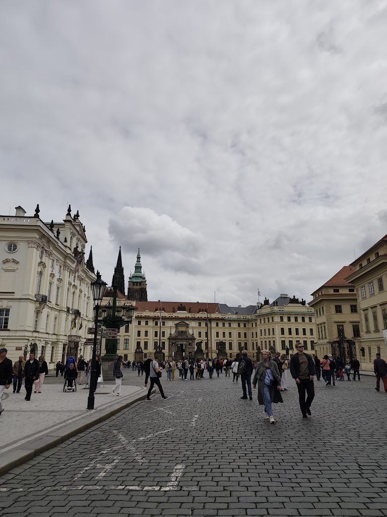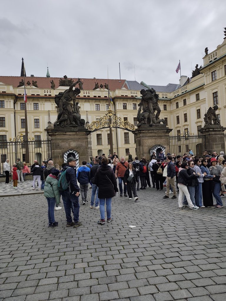 Do kompleksu zamkowego wchodzi się bokiem, bo przy głównym wejściu o godzinie 12.00 następuje zmiana warty. Całe wydarzenie trwa dość długo i trzeba przeciskać się przez tłumy ludzi. Jednak efekt jest naprawdę oszałamiający. Piękne mundury, orkiestra i przemarsz. To jest coś co warto zobaczyć.