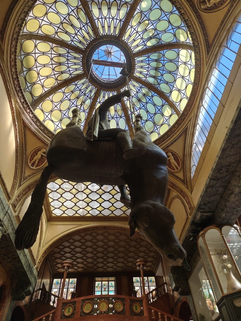 Między kamienicami znajduje się galeria Lucerna. Piękna stara galeria z najstarszym kinem i kolejną rzeźbą Davida Cernego “Święty Wacław na koniu”. Rzeźba przedstawia świętego Wacława siedzącego na zdechłym koniu. Stanowi to wymowną analogię do stojącego niedaleko pomnika św. Wacława na żywym koniu.