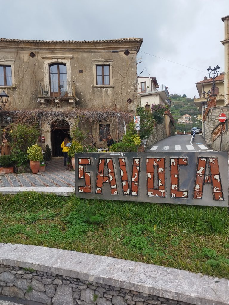 Z rana pojechaliśmy najpierw do miasteczka położonego wysoko w górach- Savoca. Nazwa tego małego sennego miasteczka wywodzi się od rośliny zwanej czarnym bzem (savucu- w dialekcie sycylijskim), która znajduje się też na herbie miasta. Miejsce to zyskało popularność dzięki filmowi “Ojciec Chrzestny”, który był kręcony na ulicach Savoci. Film opowiada o losach potężnej mafijnej rodziny. W książce akcja rozgrywa się w Corleone, ale według reżysera to miasto po wojnie, nie oddawało już tego klimatu zacisznej, zacofanej wioseczki. Dodatkowym powodem była obecność prawdziwych mafii i ich sprzeciw wobec nakręcenia scen w Corleone. Aby dostać się do miasteczka trzeba jechać okropnymi zakrętami wysoko w góry, myślałam że dostanę zawału.