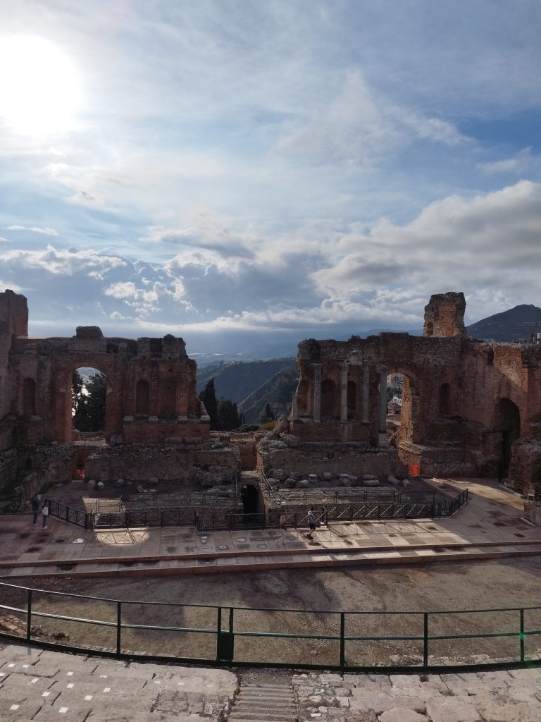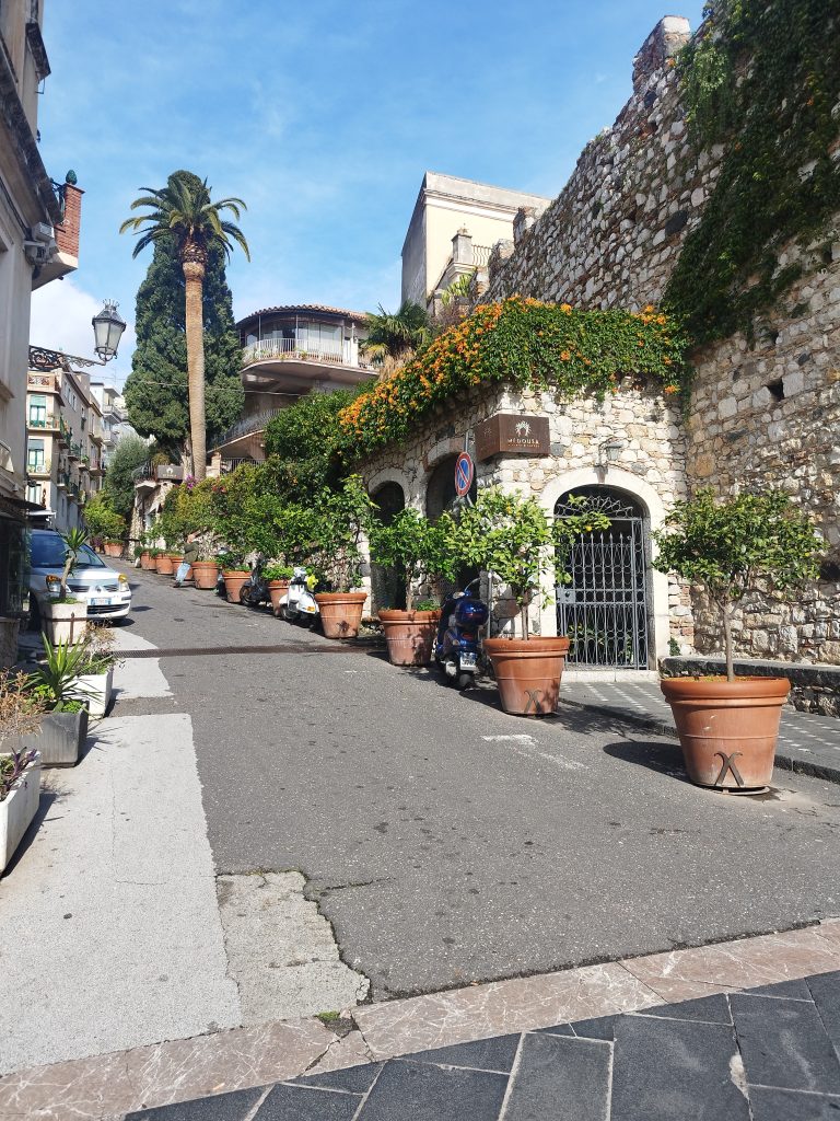 Odbijając lekko w prawo tuż przed północną bramą dojść można do przepięknego i dobrze zachowanego antycznego tearu- Teatro Antico di Taormina. Niesamowite miejsce z którego widać Etnę, kiedy oczywiście nie jest ukryta za chmurami. Ta okazała budowla została wybudowana przez Greków, ale później przebudowana przez rzymian i użytkowana jako arena.