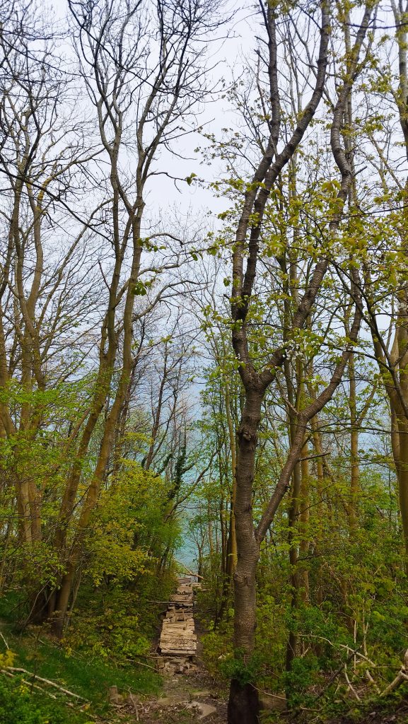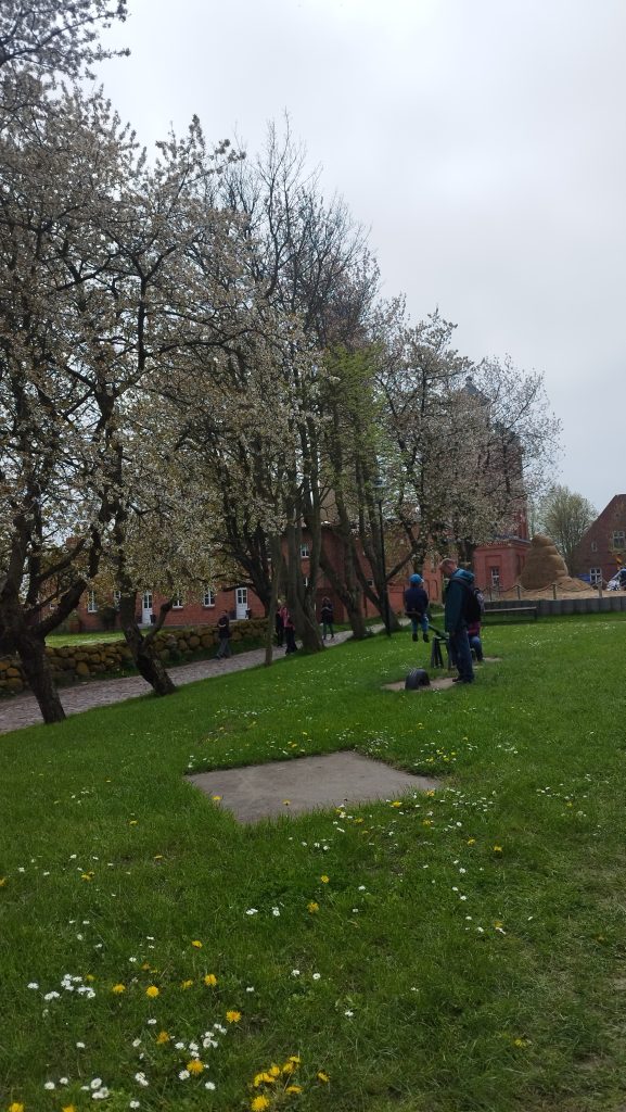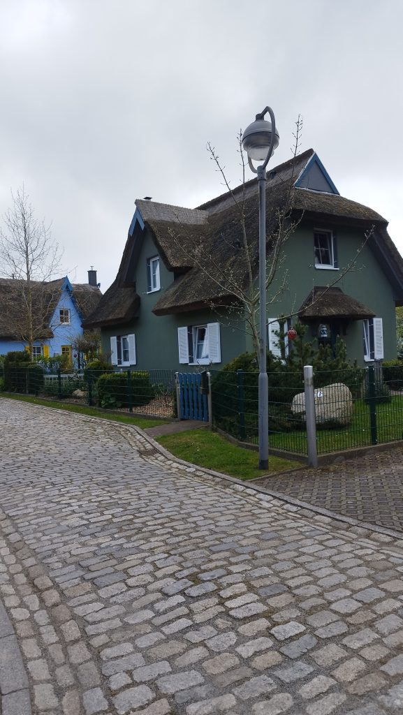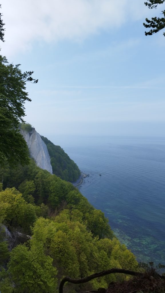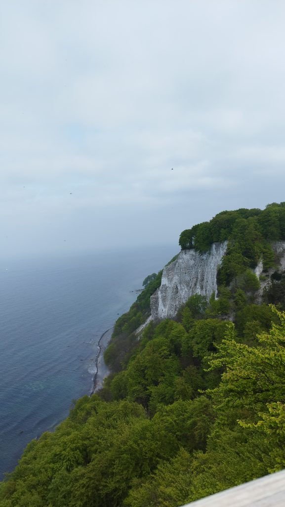 Następny dzień był zdecydowanie ciekawszy. Pojechaliśmy samochodem do Niemiec, aż na sam cypel do Putgarten– region Rugia. W międzyczasie się trochę gubiliśmy, prawie powodowaliśmy wypadki i przejeżdżaliśmy monumentalnym mostem Rugenbrucke mającym 2830m długości. Wokół nas rezerwaty przyrody, parki krajobrazowe i małe estetyczne wioseczki, która pozwalały zapomnieć o ciągnącej się w nieskończoność drodze. Wbrew pozorom dojechaliśmy na miejsce w niecałe 3 godziny, więc czasowo wyszło to dobrze. Zatrzymaliśmy się na Parkplatz Kap Arkona i stamtąd 1, 2km spacerkiem przez urokliwe miasteczko, gdzie zaopatrzyliśmy się w Guinness’a, aż do wioski nadmorskiej Vitt. Tam zeszliśmy na kamienistą plaże i oglądaliśmy klify od dołu. Było trochę mgliście, ale im dłużej szliśmy tym się rozpogadzało. Kamieniami szliśmy aż do stromych schodów ukrytych w zaroślach białych kwiatów, które prowadziły na szczyt klifów i pierwszy punkt widokowy Veilchentreppe- Kap Arkona. A stamtąd 10 minut było do latarni Peilturm Kap Arkona i Kap Arkona. Przy tych latarniach znajduje się knajpka z jedzeniem, park z rzeźbami, bursztynami, placem zabaw i bunkrem. Na latarnie można wejść a wejście kosztuje 3Euro. Następnie udaliśmy się do Nationalpark Jasmund, aby zobaczyć Konigsstuhl- krzesło królewskie, to najbardziej znany kredowy klif na Rugii. Według legendy nazwa wywodzi się od starożytnego zwyczaju, zgodnie, z którym osoba wybrana na króla, jako pierwsza musiała wspiąć się na klif od strony morza i zasiąść na krześle na szczycie. Wstęp na tę atrakcję jest płatny, ale chyba opłacalne jest przejście bardziej na południe, na Victoriasicht, widok Wiktorii. Mała platforma jest zdecydowanie lepsza niż krzesło króla, bo można z niej zobaczyć ten słynny kredowy klif i to bezpłatnie. Minusem jest fakt, że jest drobniutka i często ustawiają się do niej kolejki. Miejsce to powstało po tym jak odwiedził je Król Wilhelm I wraz ze swoją córką Wiktorią, to właśnie na jej cześć, powstał ten taras widokowy, na którym znajdują się kłódki zakochanych. Byliśmy tak zmęczeni, po tych spacerach, że tylko tyle udało się nam zobaczyć.