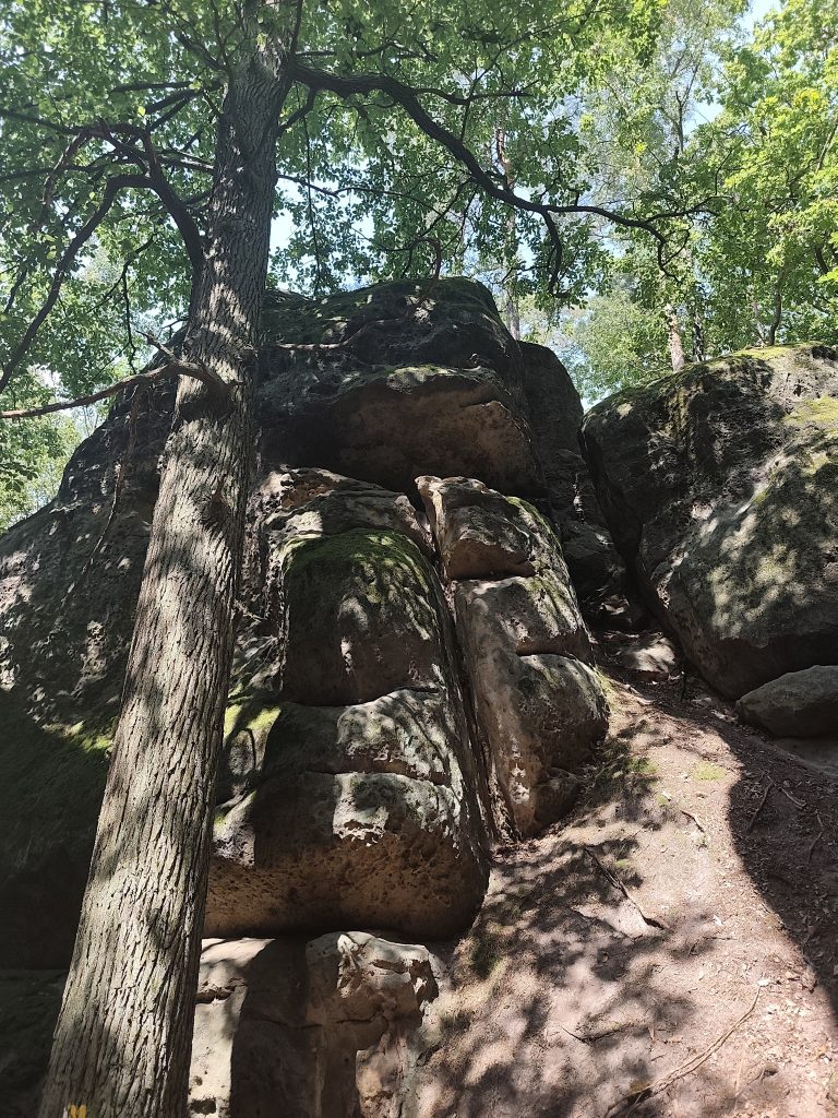 Wycieczka poświęcona spokojnym spacerom w lesie między skałami… tak, mogłoby się wydawać na zdjęciach. Jednak Kokoriński park narodowy na terenie Czech okazał się niemałym wyzwaniem. Skały, korzenie, łańcuchy do wspinaczki czy wąskie przesmyki przysporzyły czasem lekkich problemów. Tak więc jeśli się tam wybieracie, weźcie ze sobą buty trekkingowe ( górskie). Broń Boże nie jedzcie tam w sandałkach, skończycie zapewne z poranionymi stopami. Ciekawą atrakcją, do której też trzeba było się wspiąć, były Diabelskie Głowy. Stamtąd pojechaliśmy już na nasz główny szlak, czyli żółty, rozpoczynający się w miejscowości Mseno. ( Polecam aplikacje do szlaków turystycznych – mapy.com)