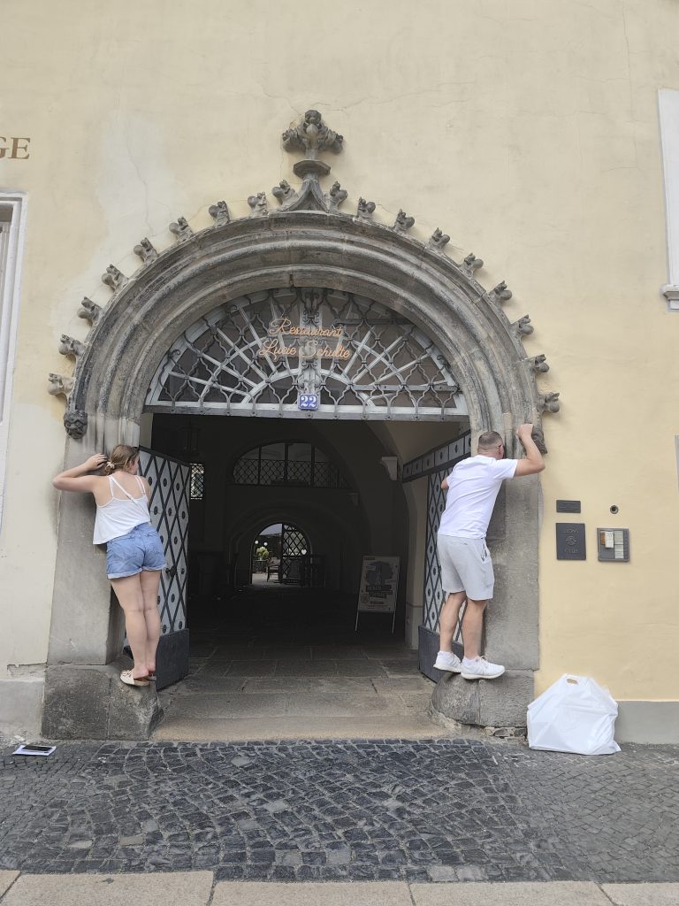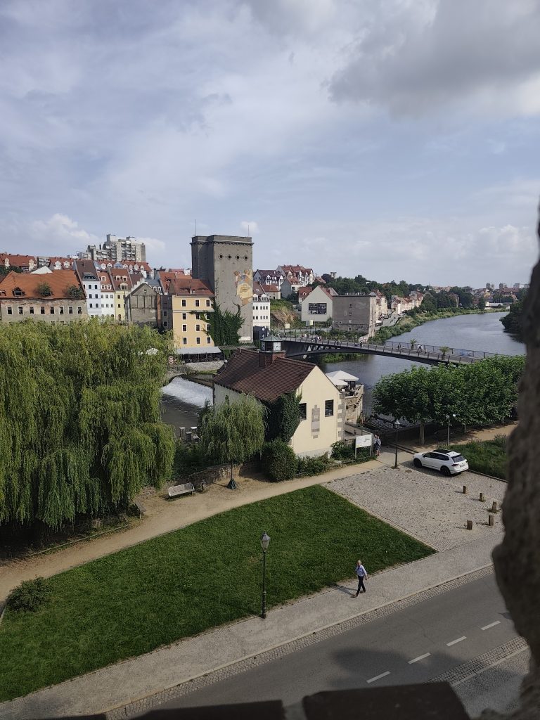 Następnego dnia czekało nas zwiedzanie Görlitz. Krótki spacer po Zgorzelcu, aby dojść do mostu im. Jana Pawła II. Stamtąd już po stronie niemieckiej parkiem wzdłuż rzeki aż do głównego mostu i wejścia na rynek. Utenmarkt, przy którym znajduje się dom barokowy, który z całego serca polecam zwiedzić. (Barockhaus – Görlitzer Sammlungen für Geschichte und Kultur) To w nim znajduje się magiczna biblioteka niczym z Harrego Pottera. Ponadto zobaczyć tam można pierwsze maszyny wytwarzające elektryczność, układ mieszkań barokowych, trochę sztuki i nauki. Po drugiej stronie placu znajduje się łuk szeptów. Z jednej strony łuku ktoś szepcze, a z drugiej to słuchać. Naprawdę! Testowałam.